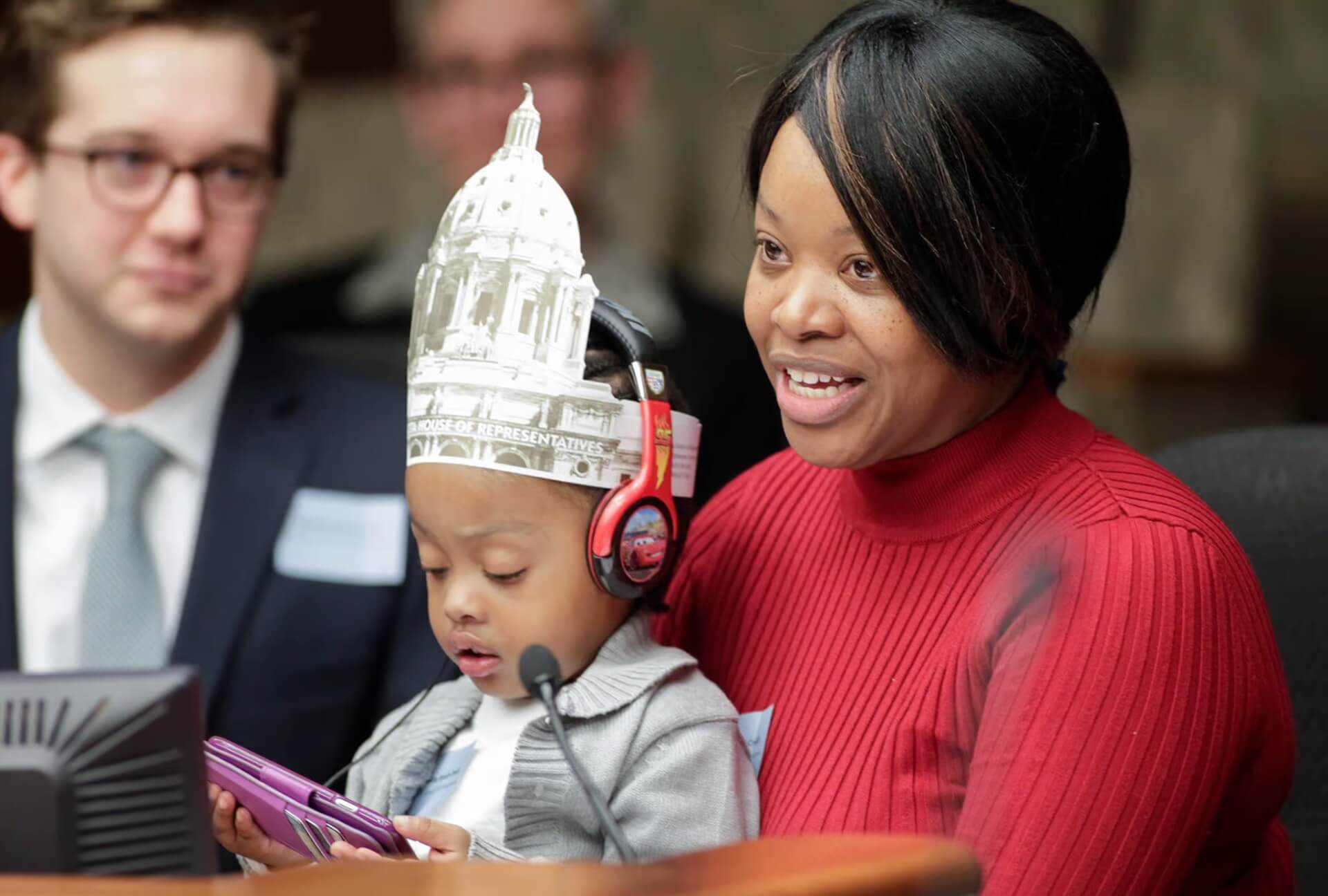 • Kaleena, with her son, pictured at the top of this article, and Angel, P+P customers, testified in the House and Senate taxes committees in support of expanding Working Family Credit.